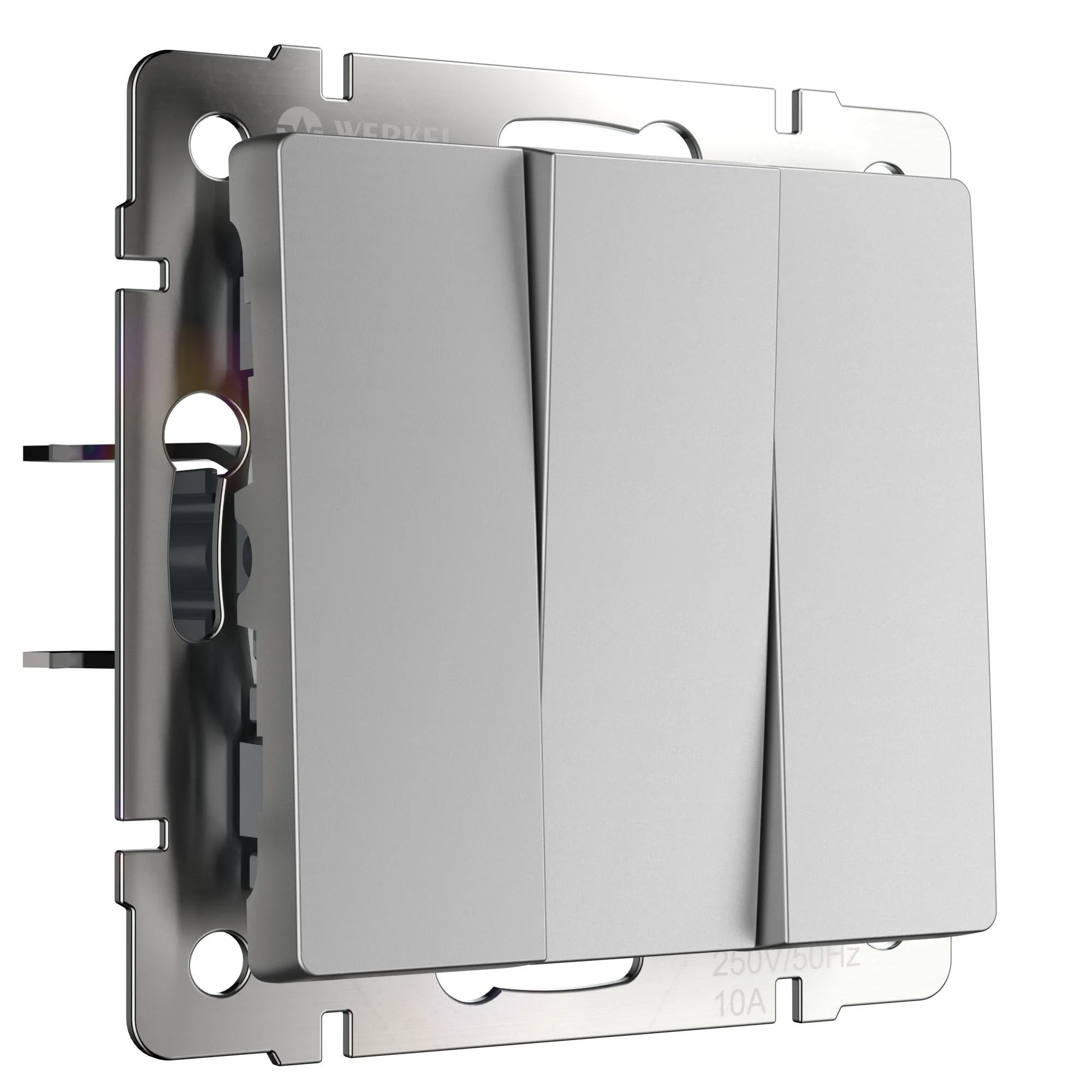 Выключатель трехклавишный серебряный матовый W1130065 – надёжное и стильное управление освещением