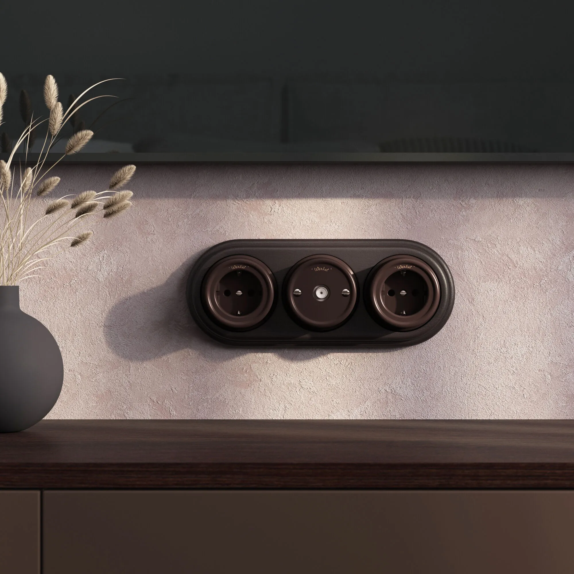ТВ-розетка Werkel коричневая – это выбор тех, кто стремится к совершенству в каждой детали. Добавьте нотку винтажного шика в ваш дом и наслаждайтесь современными технологиями в элегантном исполнении!