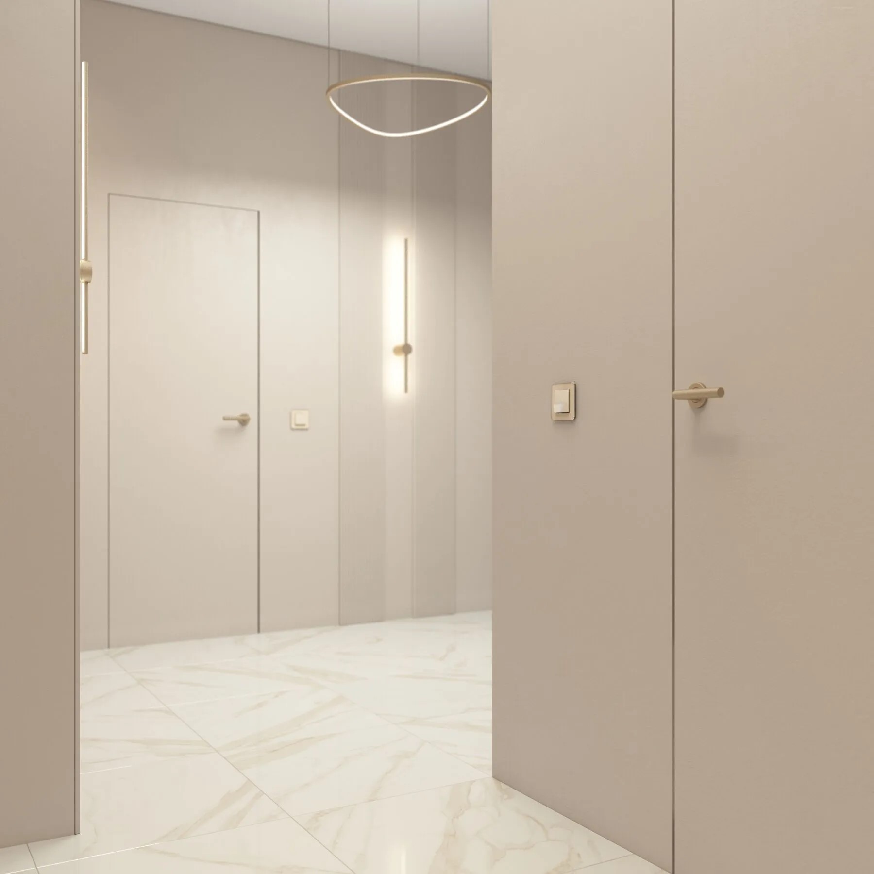 Футуризм — это не просто интерьер, а окно в будущее: научно-технический прогресс, невесомость форм, инновационные материалы и интерфейсы, которые сливаются со стеной. В такой гостиной всё должно быть интуитивным, технологичным и визуально «растворяющимся» — включая розетки и выключатели.