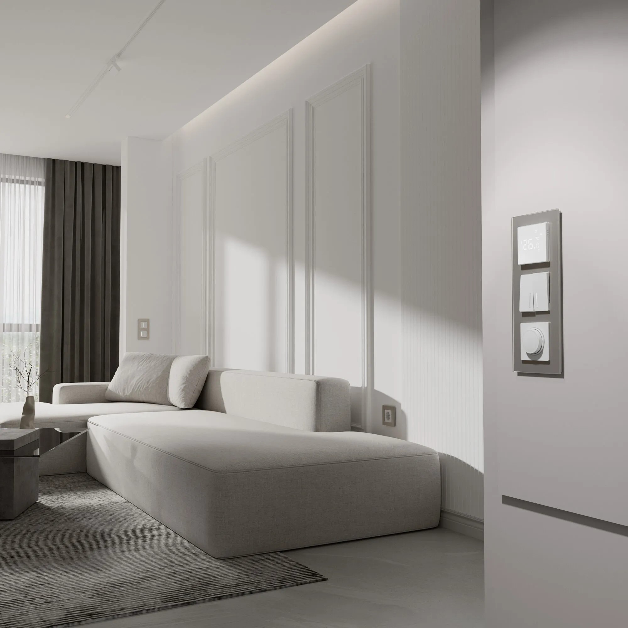 Тёплый минимализм — это баланс между строгостью минимализма и душевным уютом: нейтральная палитра, натуральные материалы, мягкие текстуры и максимум комфорта без визуального шума. В таком интерьере всё должно быть функциональным, но тёплым — включая розетки и выключатели.